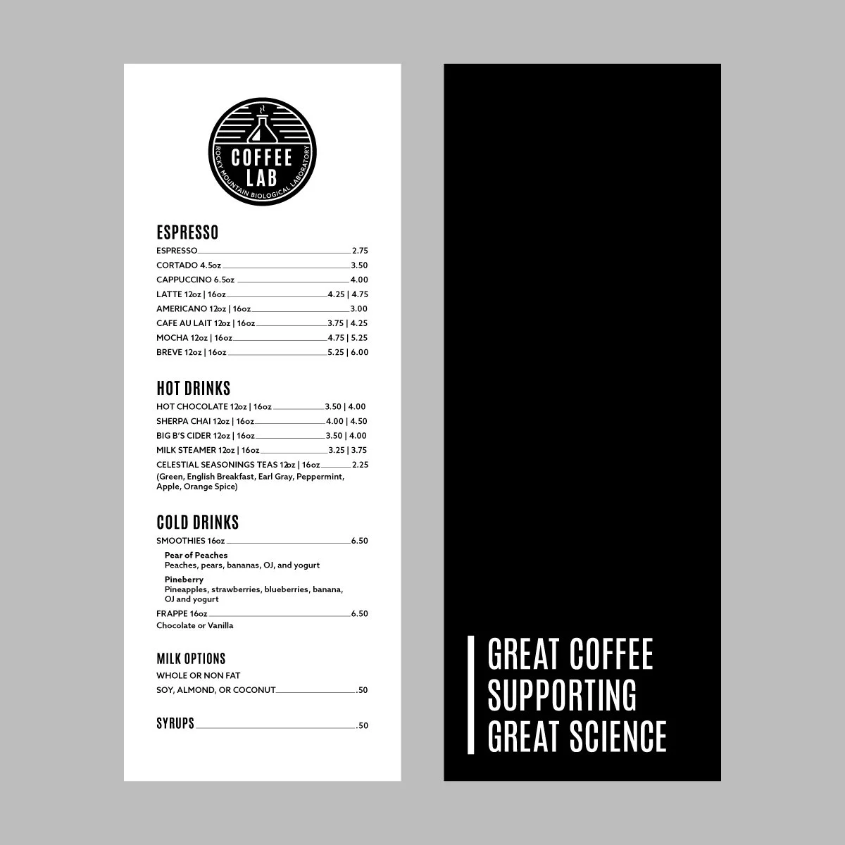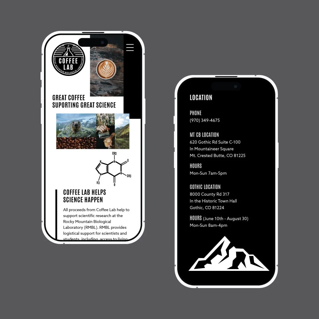 Located in Crested Butte, CO, Coffee Lab combines a love of coffee with a mission to support scientific research at the Rocky Mountain Biological Laboratory (RMBL). I designed their branding, menu, and responsive website to reflect this unique partnership. The website was crafted with mobile optimization in mind, ensuring a seamless and engaging user experience across all devices.